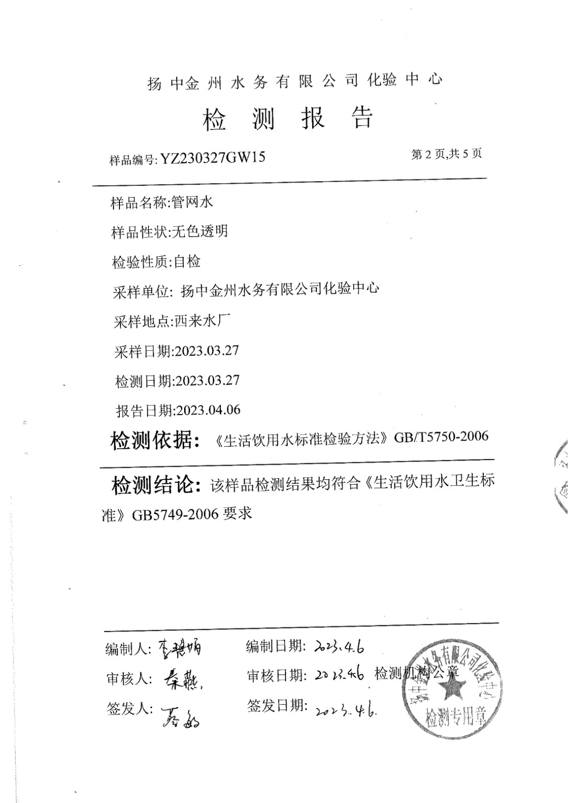 水質(zhì)公告